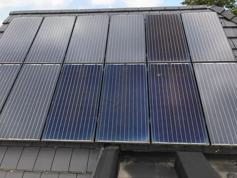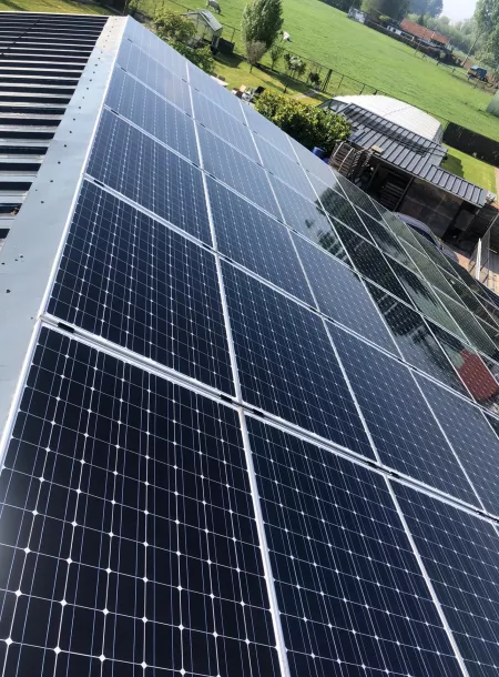 Wij houden alles in de gaten en komen jaarlijks met osmosewater het onderhoud uitvoeren. Wij doen meteen ook een visuele controle van de aansluitingen en de kabels. Er zijn wel wat vogelsoorten die hun nest durven maken, beschut onder de zonnepanelen. Wij merken dit tijdig op en verwijderen de nesten, vooraleer er onherstelbare schade wordt aangericht die u opzadelt met hoge herstelkosten.